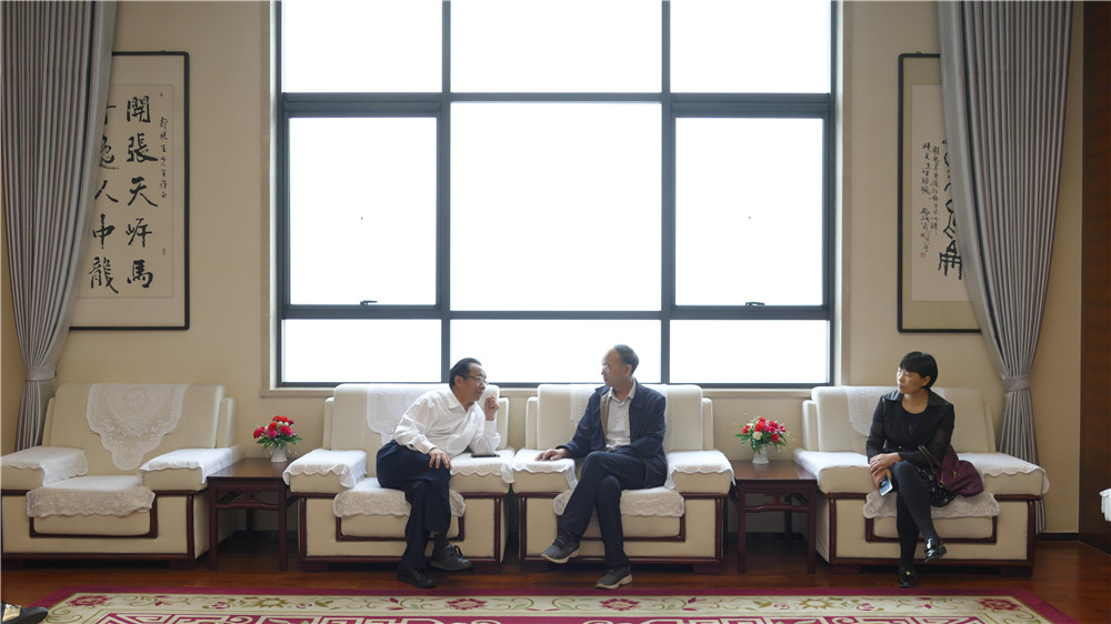儀式結束后, 林州市總工會主席栗旺生與公司董事長郭現(xiàn)生就企業(yè)文化陣地建設進行了座談交流與探討。