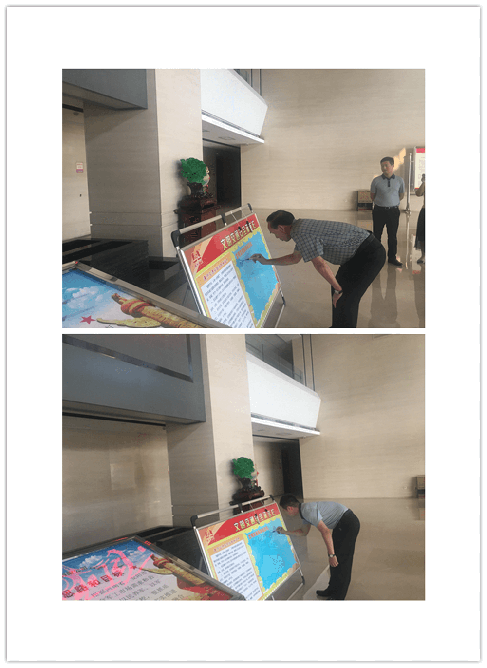 簽訂“遵守交通安全法規(guī)承諾書”。公司制作了“遵守交通安全法規(guī)承諾欄”版面十余塊,擺放在醒目位置,以部門為單位,每位員工在版面上進行簽名承諾。公司總經(jīng)理郭釧帶頭在《文明交通承諾欄》上簽名,其他領(lǐng)導(dǎo)和部門員工也陸續(xù)進行了簽名,通過交通安全承諾簽名,使每位員工時刻提醒自己,履行自己承諾。