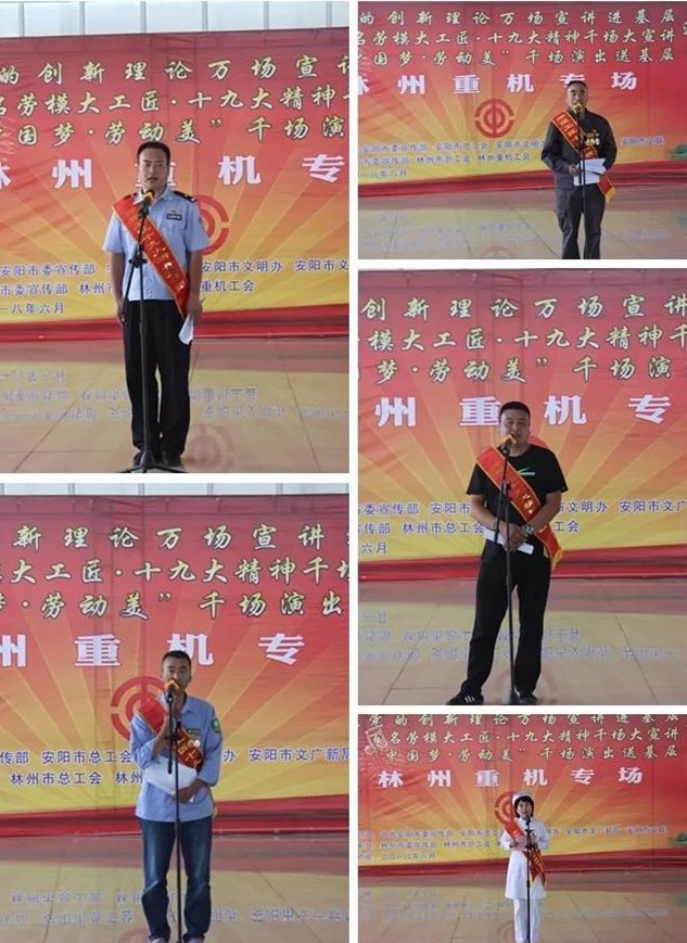 6月6日下午,安陽市黨的創(chuàng)新理論萬場宣講進基層、百名勞模大工匠?十九大精神千場大宣講暨“中國夢 勞動美”千場演出送基層巡回演出活動走進林州重機。河南省委宣傳部副部長尹書博,省委宣傳部理論處副處長楊小強,省委宣傳部理論教育講師團副團長趙琳,安陽市委宣傳部副部長冀曉東,安陽市委宣傳部理論科長龍晨曦,安陽市總工會宣教部部長張艾敏,林州市委常委、宣傳部長王獻青,林州市總工會主席栗旺生,副主席張曉云, 公司黨委副書記、副總經理趙正斌,黨委委員、工會主席路建存及職工代表300余人等出席活動。