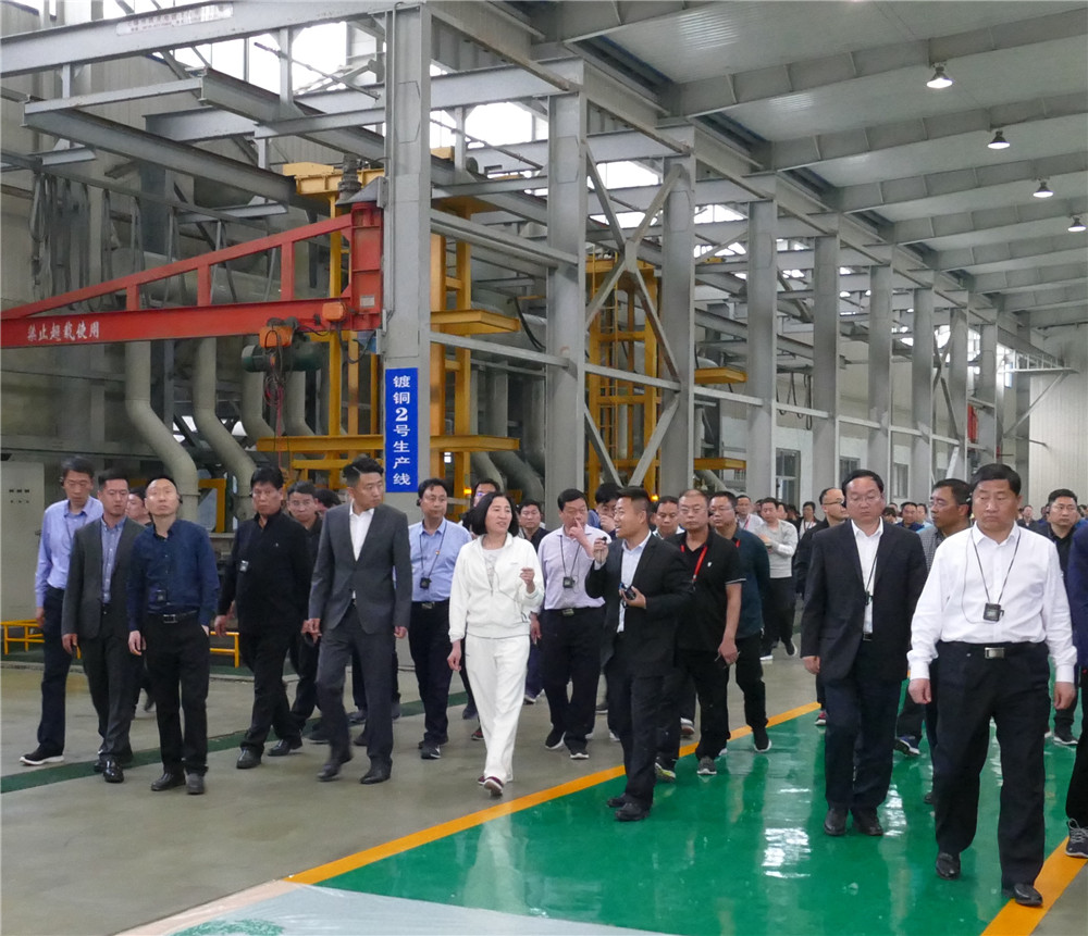 此次觀摩團主要對我公司的表面處理車間電鍍工藝、土壤污染源頭防范、污水處理、危險廢物管理等方面進行考察。總經(jīng)理郭釧代表集團公司對各位領(lǐng)導(dǎo)的到來表示熱烈的歡迎,并對公司基本情況、環(huán)保投入等方面做了簡要介紹。公司環(huán)保項目辦主任李宏旺對公司的電鍍工藝、土壤污染源頭防范、污水處理、危險廢物管理做了詳細的介紹。公司的環(huán)保治理工作得到了觀摩團的一致好評。