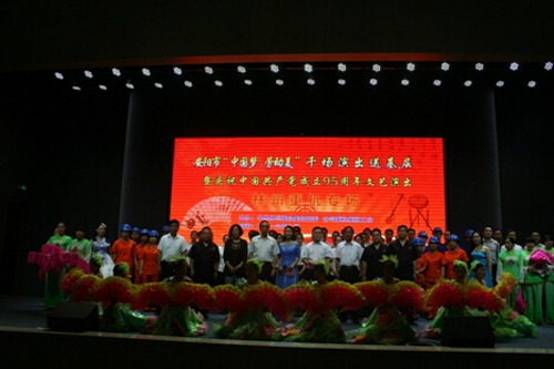 為慶祝中國(guó)共產(chǎn)黨成立95周年,樹(shù)立典型,表彰先進(jìn),7月1日,公司組織召開(kāi)了 “七一”表彰會(huì)暨文藝演出活動(dòng)。表彰會(huì)回顧總結(jié)了過(guò)去一年來(lái)的工作,并對(duì)在公司各條戰(zhàn)線上做出顯著成績(jī)的16名優(yōu)秀共產(chǎn)黨員予以表彰。表彰會(huì)結(jié)束后,公司精心組織排練的文藝節(jié)目向各條戰(zhàn)線上的職工進(jìn)行了精彩的匯報(bào)演出。公司主要領(lǐng)導(dǎo)出席此次會(huì)議并觀看演出。