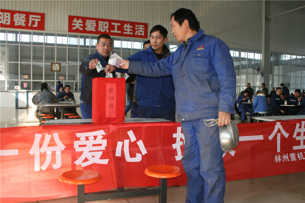 11日上午,公司工會(huì)立即發(fā)出募捐倡議書。下午二點(diǎn)在公司辦公樓前舉行了募捐儀式并現(xiàn)場(chǎng)募集。公司總經(jīng)理郭釧代表公司捐款10000元,公司董事韓錄云代表其家人捐款10000元,其他公司領(lǐng)導(dǎo)及機(jī)關(guān)部室、分子公司管理人員紛紛捐款,特別是與郭保紅素不相識(shí)、在我公司施工的深圳市朗奧潔凈科技股份有限公司捐款3000元,河南派普建工集團(tuán)有限公司捐款1000元,供應(yīng)商延津縣熱處理廠張東??吹侥季杌顒?dòng)也捐款500元,短短不到半個(gè)小時(shí)募集捐款近4萬(wàn)元。更值得一提的是原林州重機(jī)集團(tuán)員工張國(guó)華,也是腎病患者,曾經(jīng)得到過(guò)林州重機(jī)捐款資助的他看到朋友圈的消息后,也委托朋友捐款10元,他說(shuō):我也是一名尿毒癥患者,我也曾經(jīng)得到過(guò)林州重機(jī)的捐助,現(xiàn)在我雖然還在治療之中,但我也要盡我一點(diǎn)心意。多么樸實(shí)的話語(yǔ),多么善良的員工,一方有難八方支援,真正體現(xiàn)出了我們林州重機(jī)是一個(gè)互助友愛的大家庭。12日中午,公司工會(huì)又在職工食堂舉行第二次募捐活動(dòng),累計(jì)募捐善款 42337元。