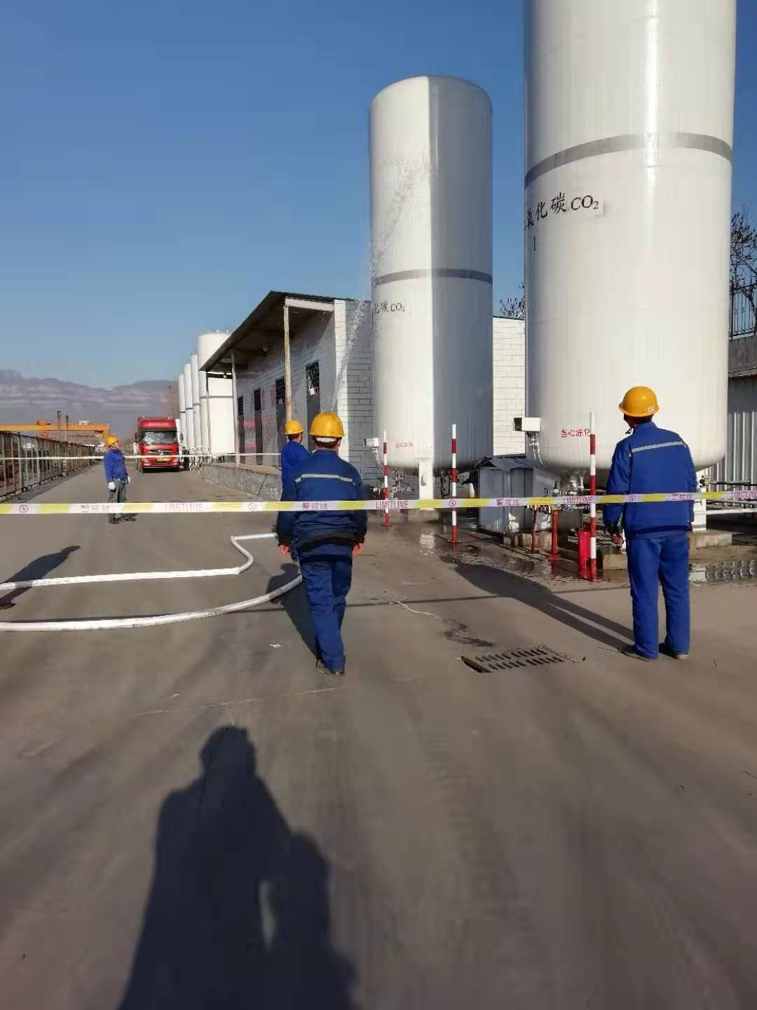 3月14日上午,在模擬現(xiàn)場(chǎng),公司制氧站值班人員發(fā)現(xiàn),二氧化碳容器罐頂溫度過高,容器隨時(shí)會(huì)發(fā)生異?,F(xiàn)象,立即報(bào)告安全生產(chǎn)部并通知了動(dòng)力設(shè)備部有關(guān)人員。安全生產(chǎn)部、動(dòng)力設(shè)備部在接到制氧站電話通知后,有關(guān)人員迅速趕到制氧站現(xiàn)場(chǎng),并在事故現(xiàn)場(chǎng)設(shè)立了警戒區(qū),維修人員用消防水帶對(duì)二氧化碳?jí)毫θ萜黜敳窟M(jìn)行水冷卻,隨著消防水的噴射,二氧化碳頂部溫度逐步降落,回到了規(guī)定的安全范圍,及時(shí)消除了安全隱患。